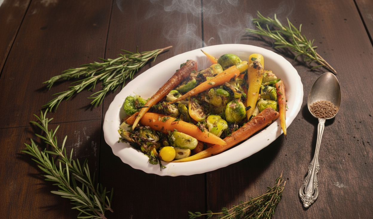 The fresh herbs like rosemary, thyme, and sage bring an aromatic depth that elevates the Brussels sprouts and carrots, turning this simple side into a flavorful standout dish. Perfect for Thanksgiving season.